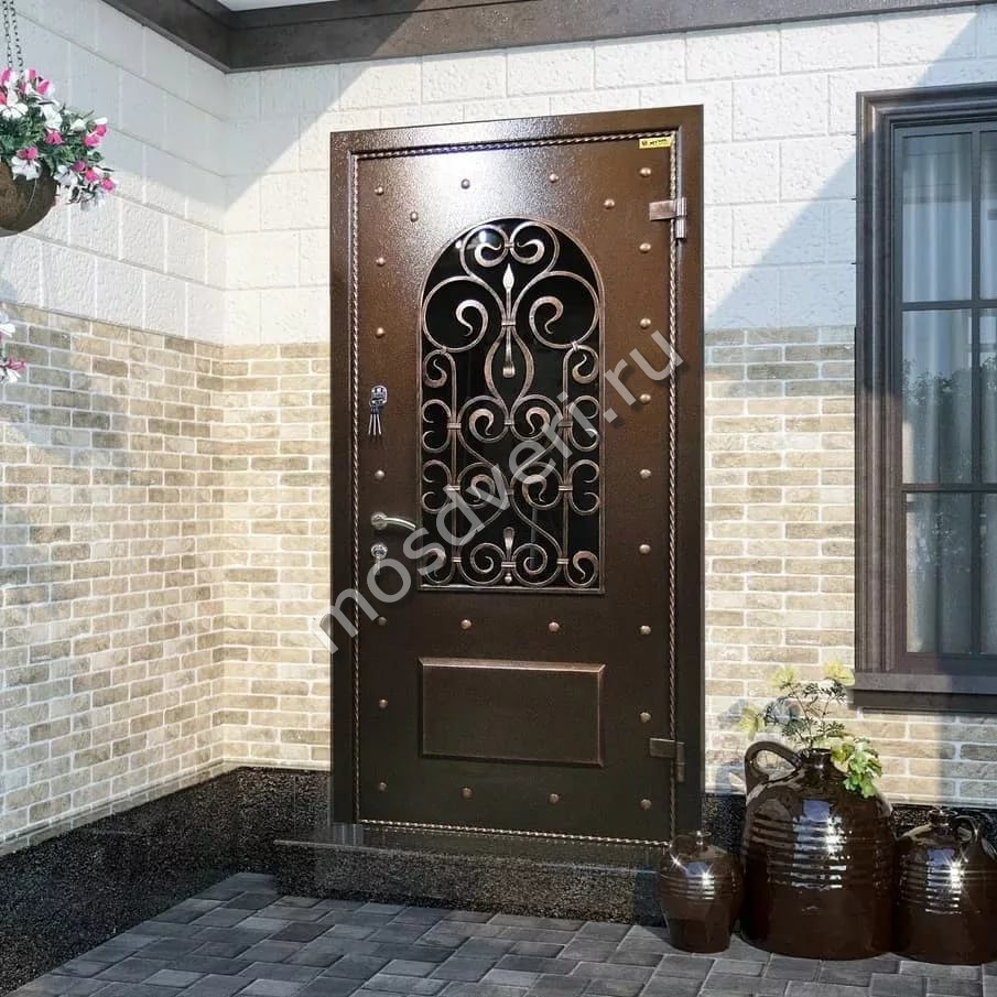 Входные двери со стеклом и ковкой в Борисоглебске